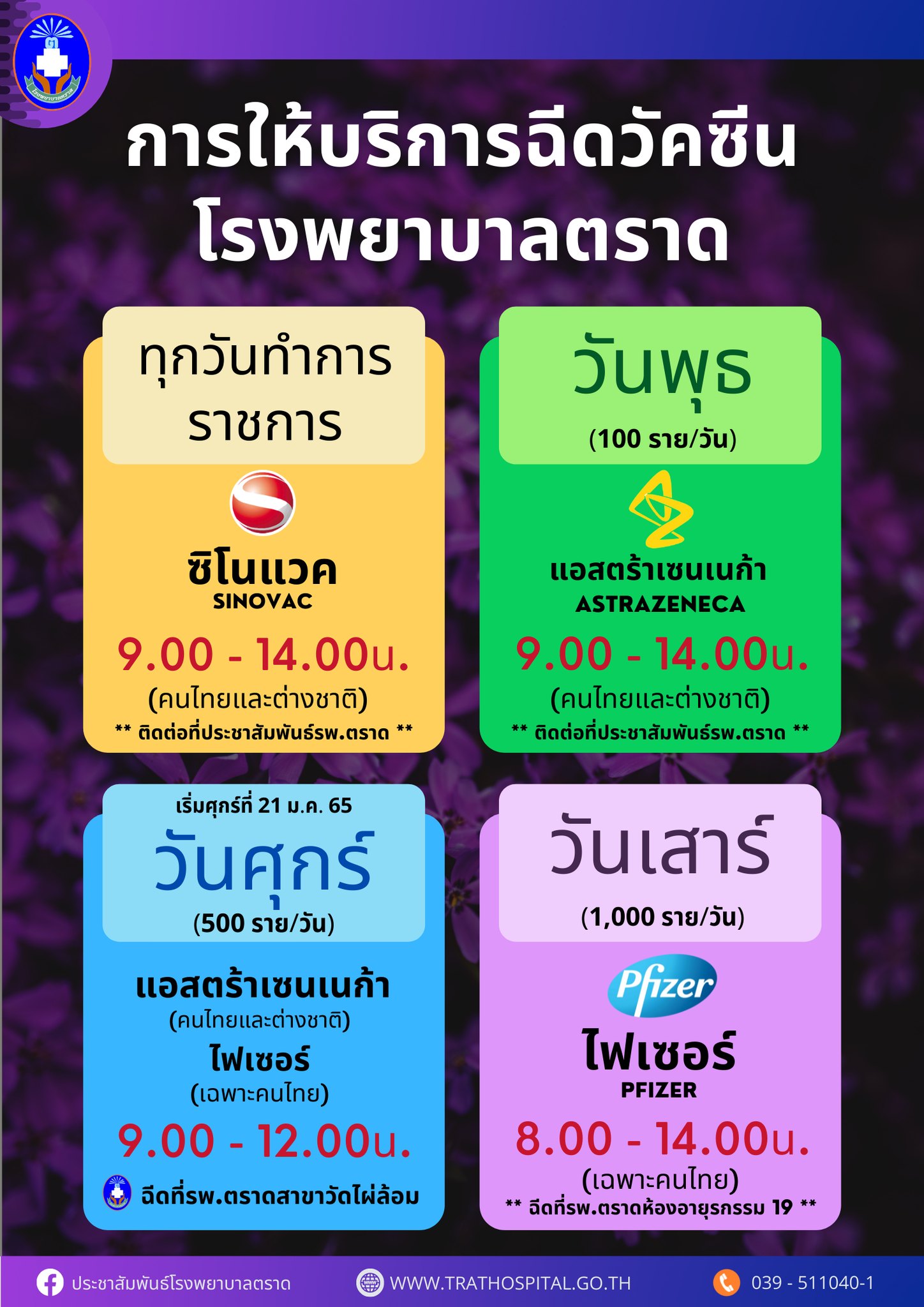 อัพเดทการให้บริการฉีดวัคซีนโรงพยาบาลตราด