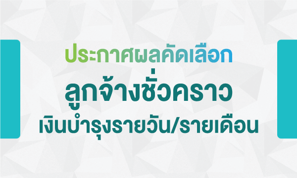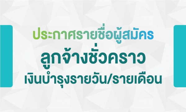 ประกาศรายชื่อผู้ได้รับการคัดเลือกเพื่อจ้างเป็นลูกจ้างชั่วคราวเงินบำรุงรายวัน 3 ตำแหน่ง พนักงานธุรการ เจ้าพนักงานพัสดุ และพนักงานพัสดุ